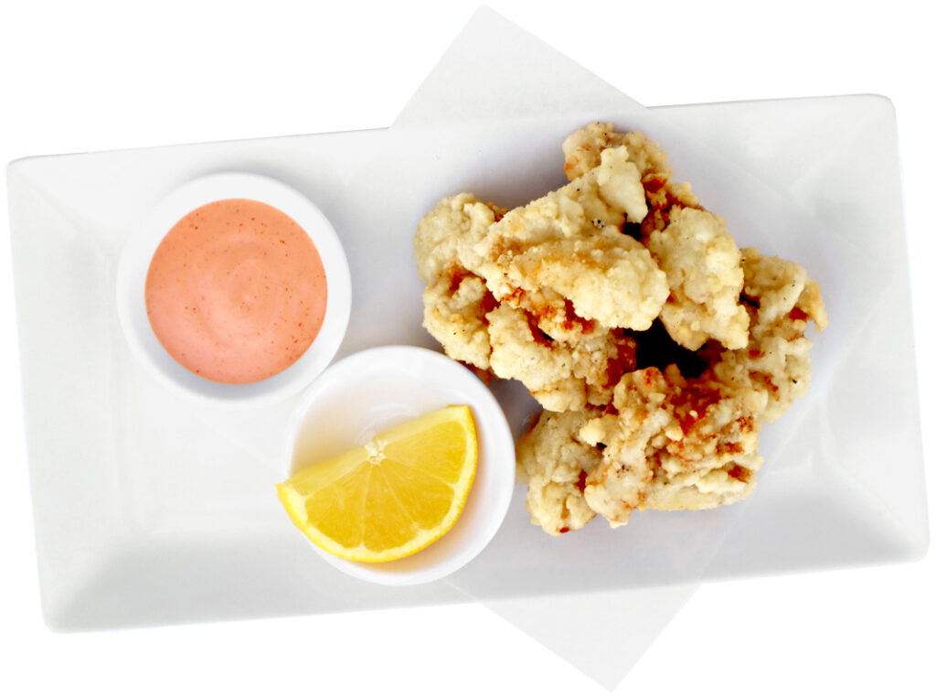 Lightly seasoned and battered chicken bites served with a spicy mayo.