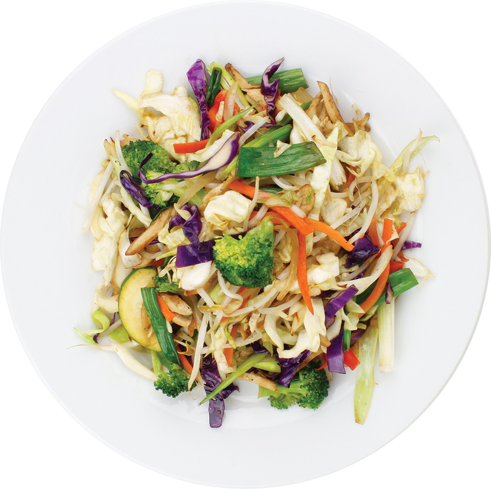 Yakisoba wheat noodles with freshly cut vegetables and your choice of protein.