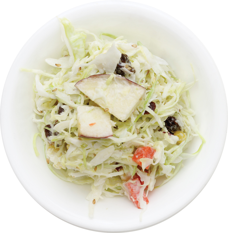 Shredded cabbage mixed in our house sauce with carrots, corn, peas, and raisins.