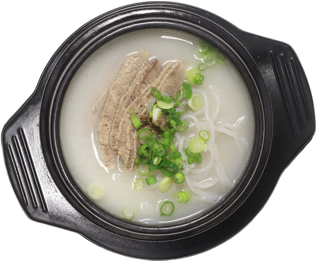 A Korean broth soup made from ox bones, brisket, and other cuts. Seasoning is generally done at the table, according to personal taste, by adding salt, ground black pepper, red pepper, minced garlic, or chopped spring onions.